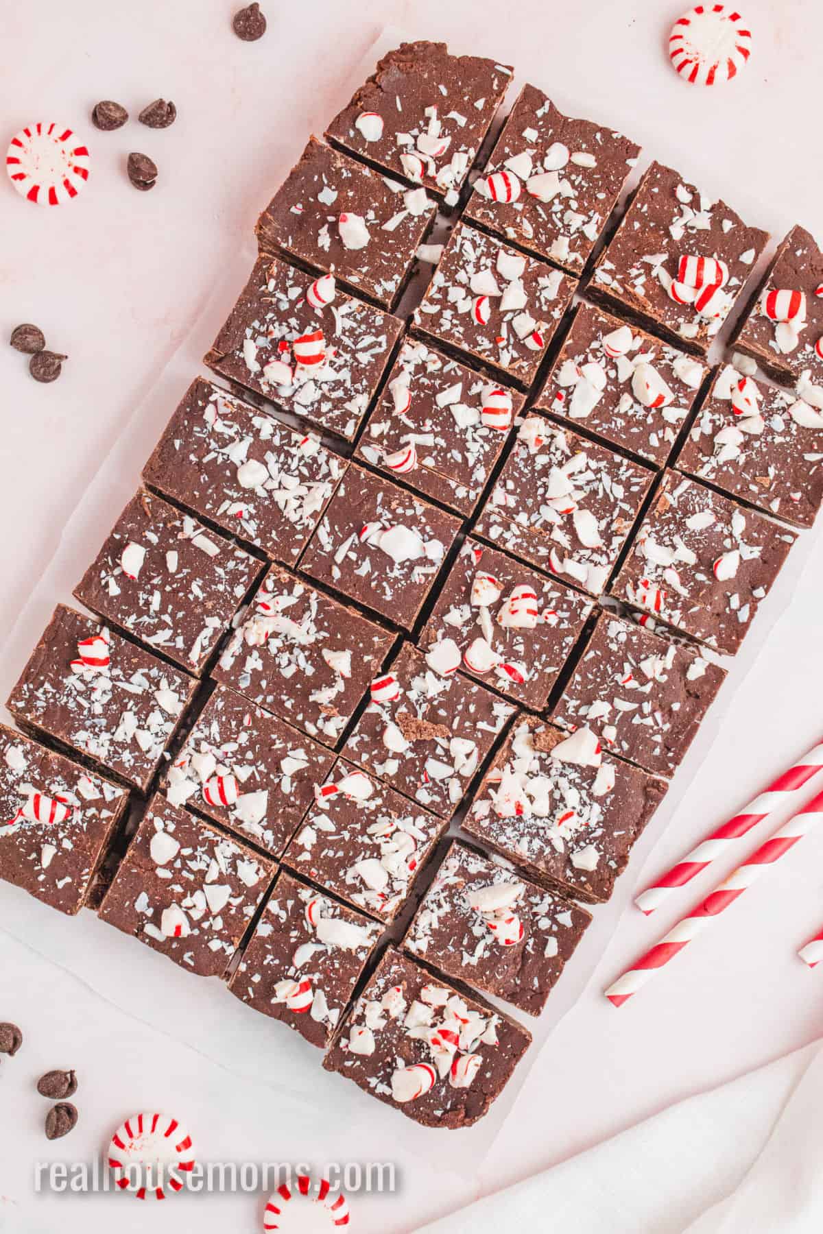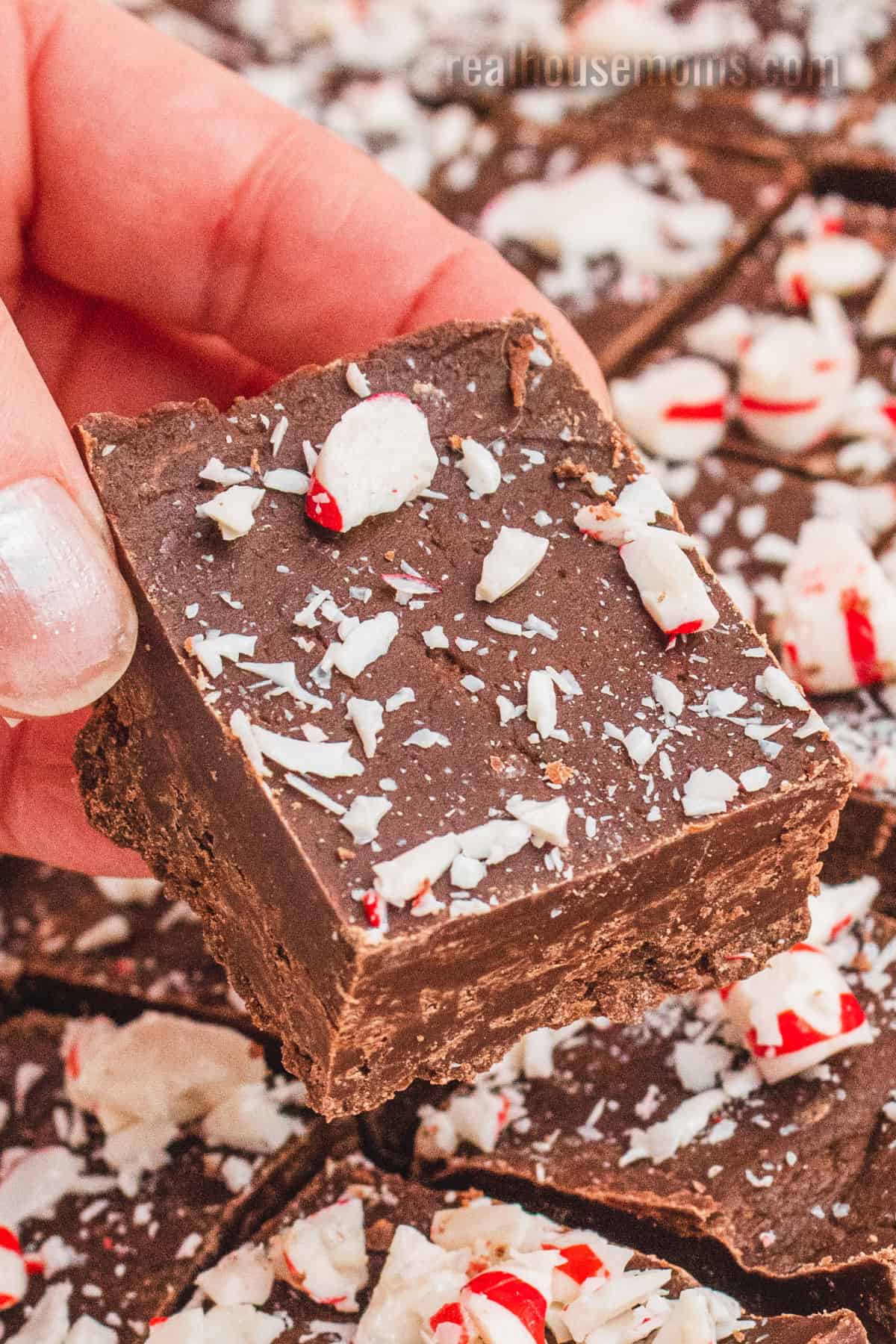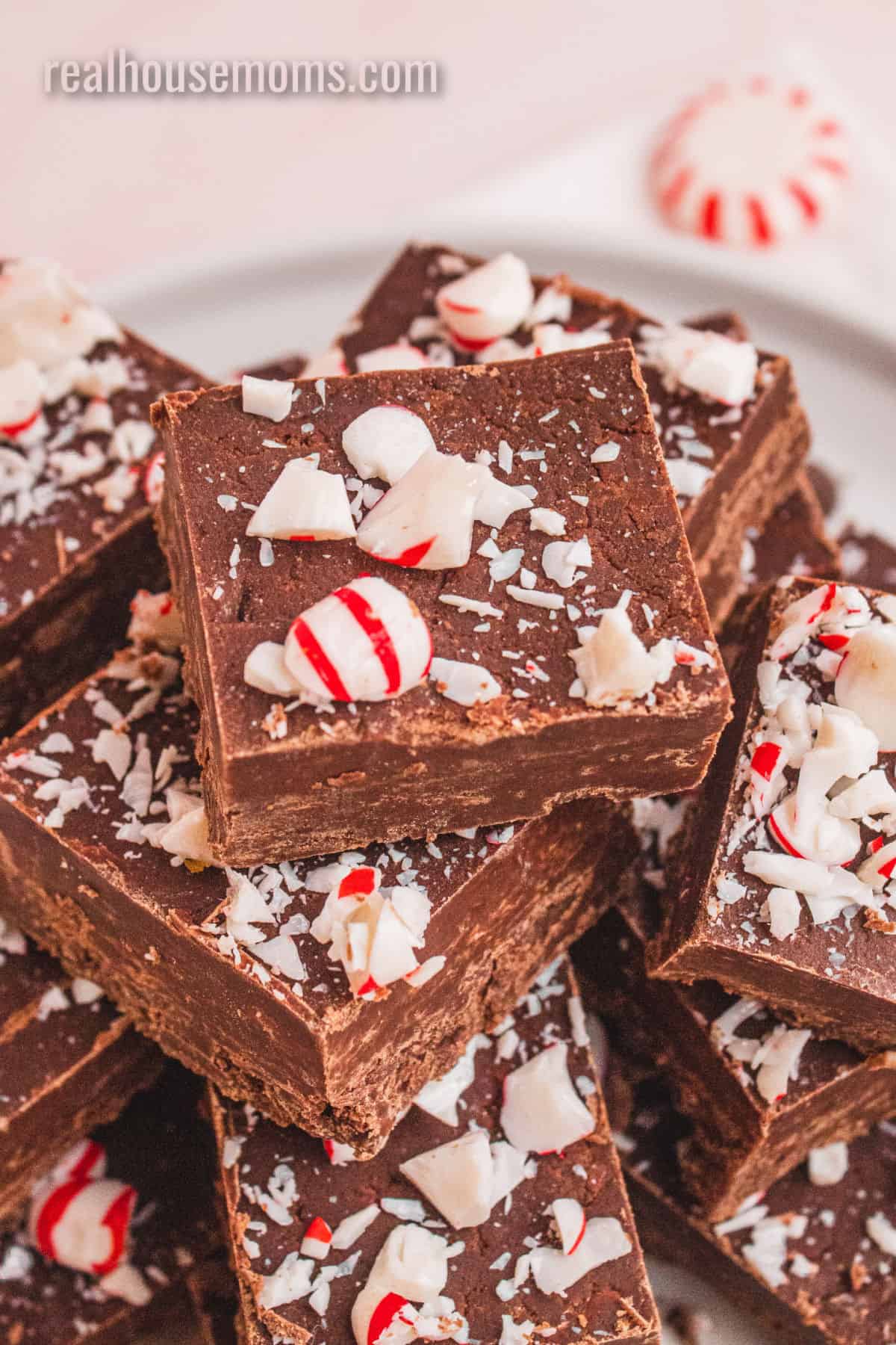 - Either regular or soft peppermint candy (mints or sticks) will crush up nicely to garnish this fudge recipe.