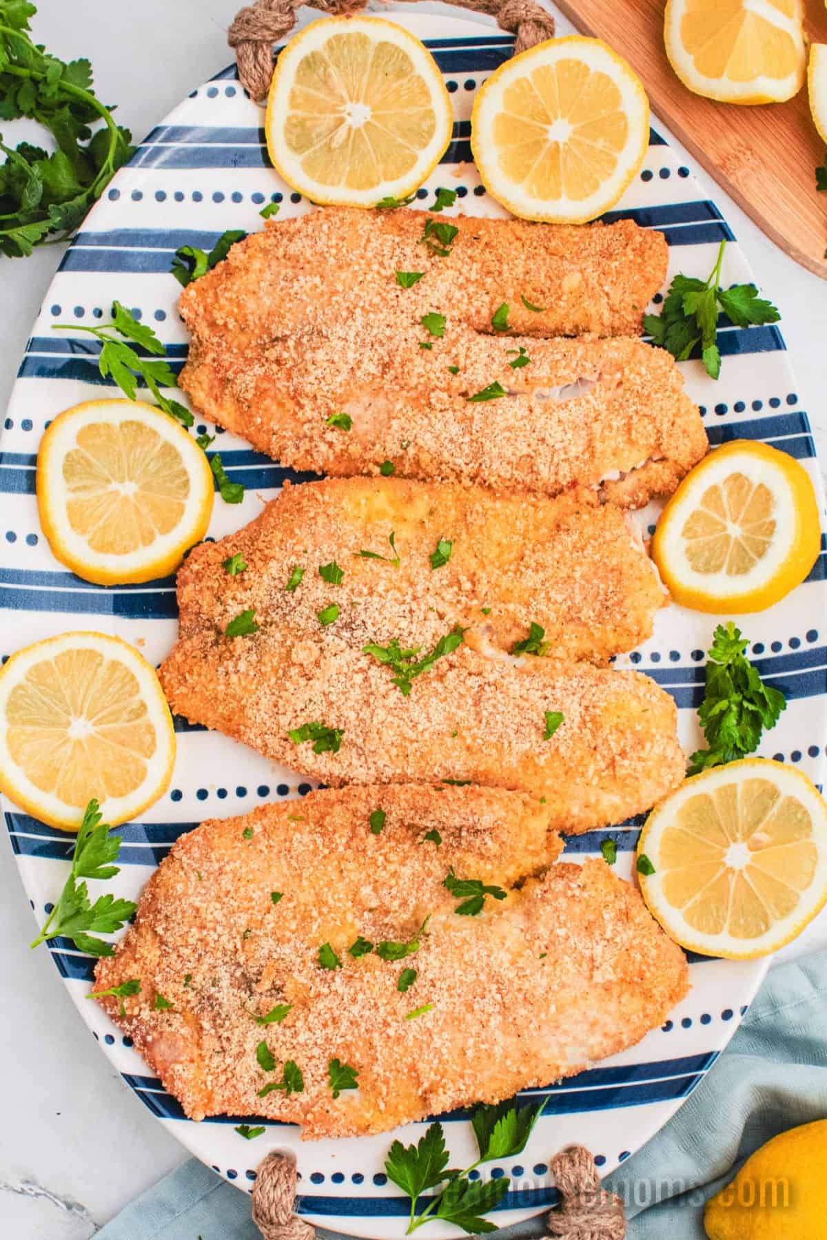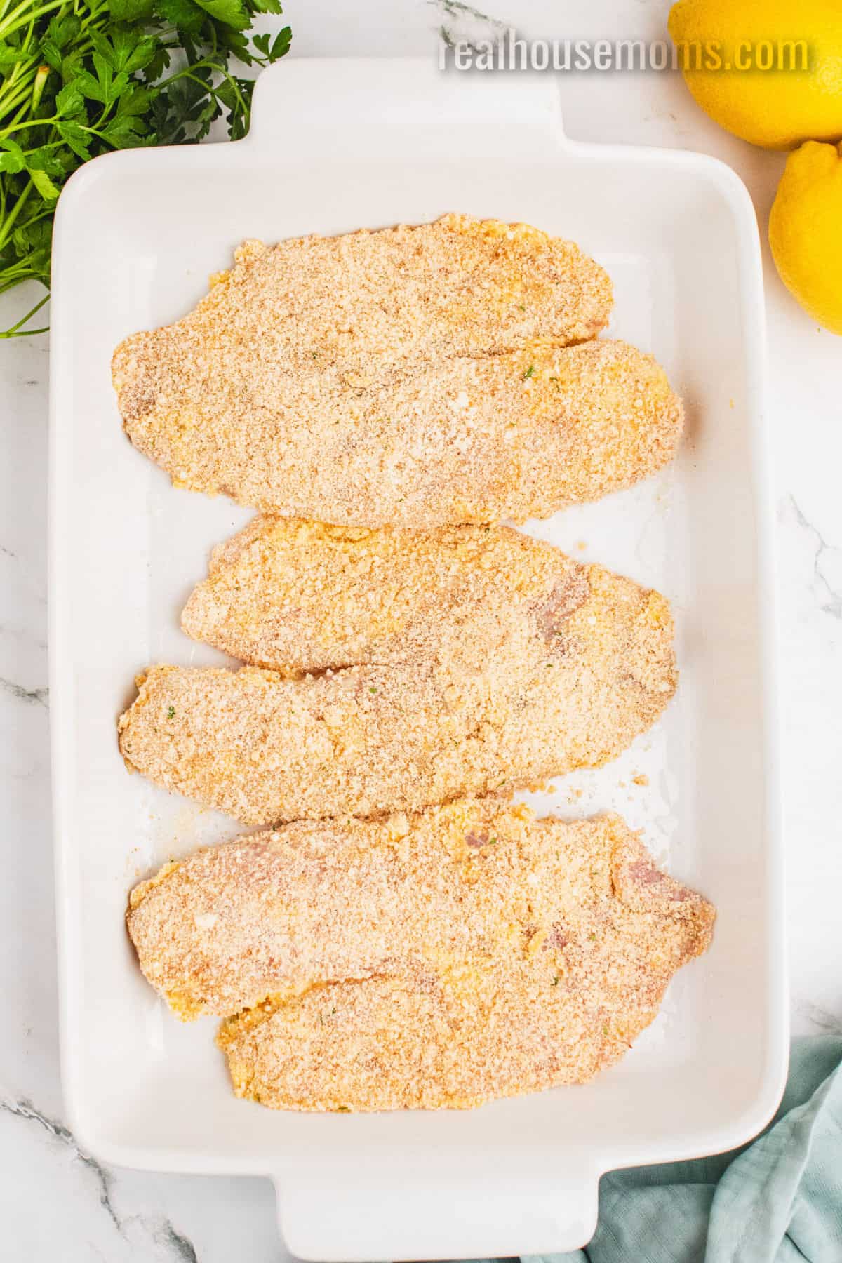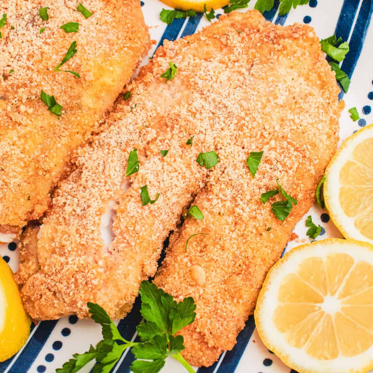 Breading: Italian breadcrumbs and parmesan cheese give these fish filets tons of crunch and flavor!
