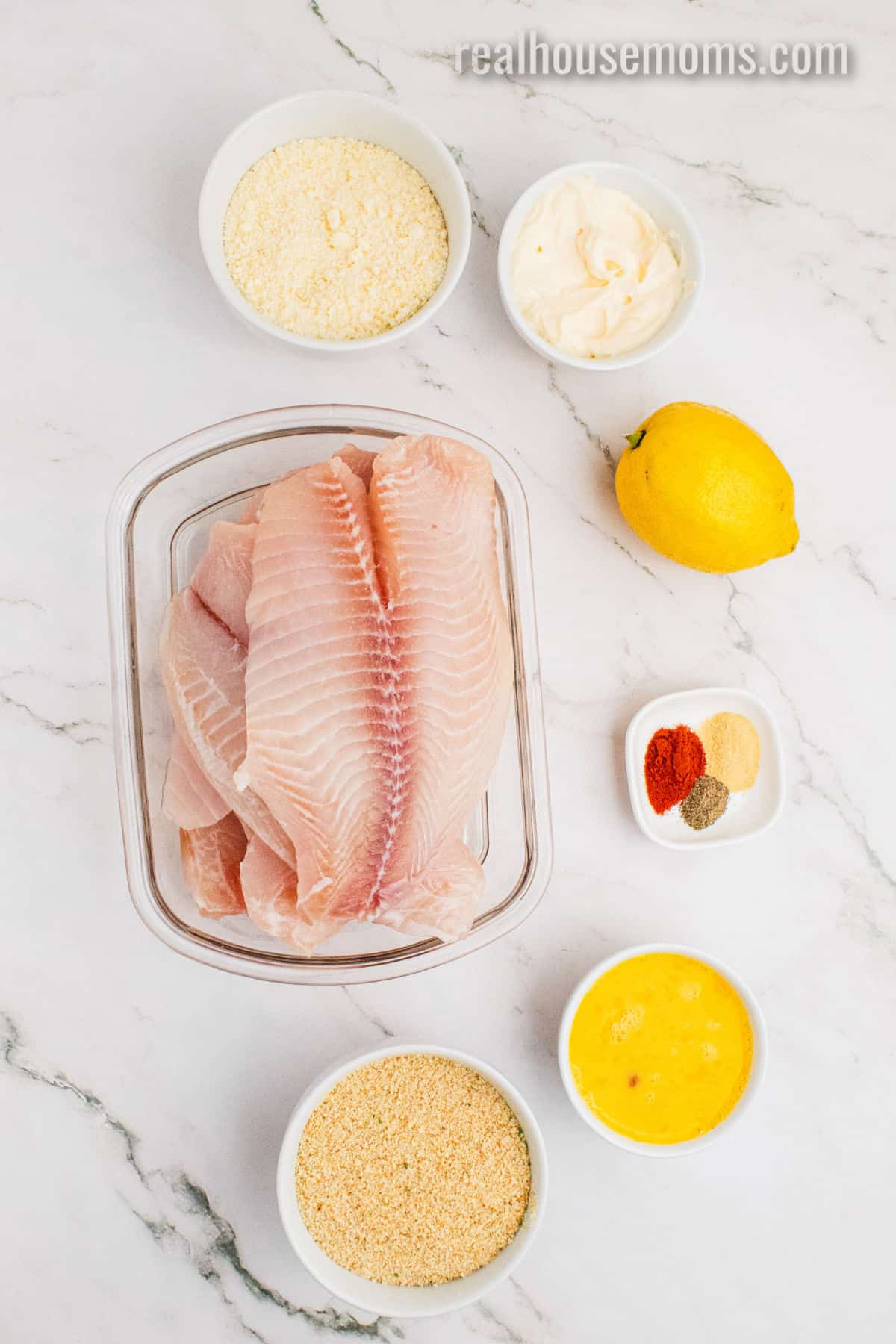 Coating: You’ll need beaten eggs, mayo, and lemon juice to bind the breading to the fish.