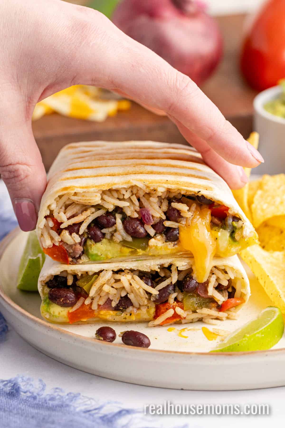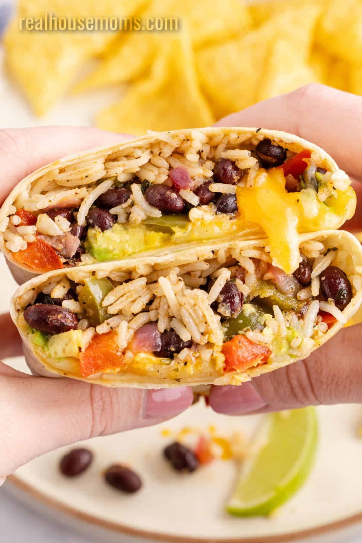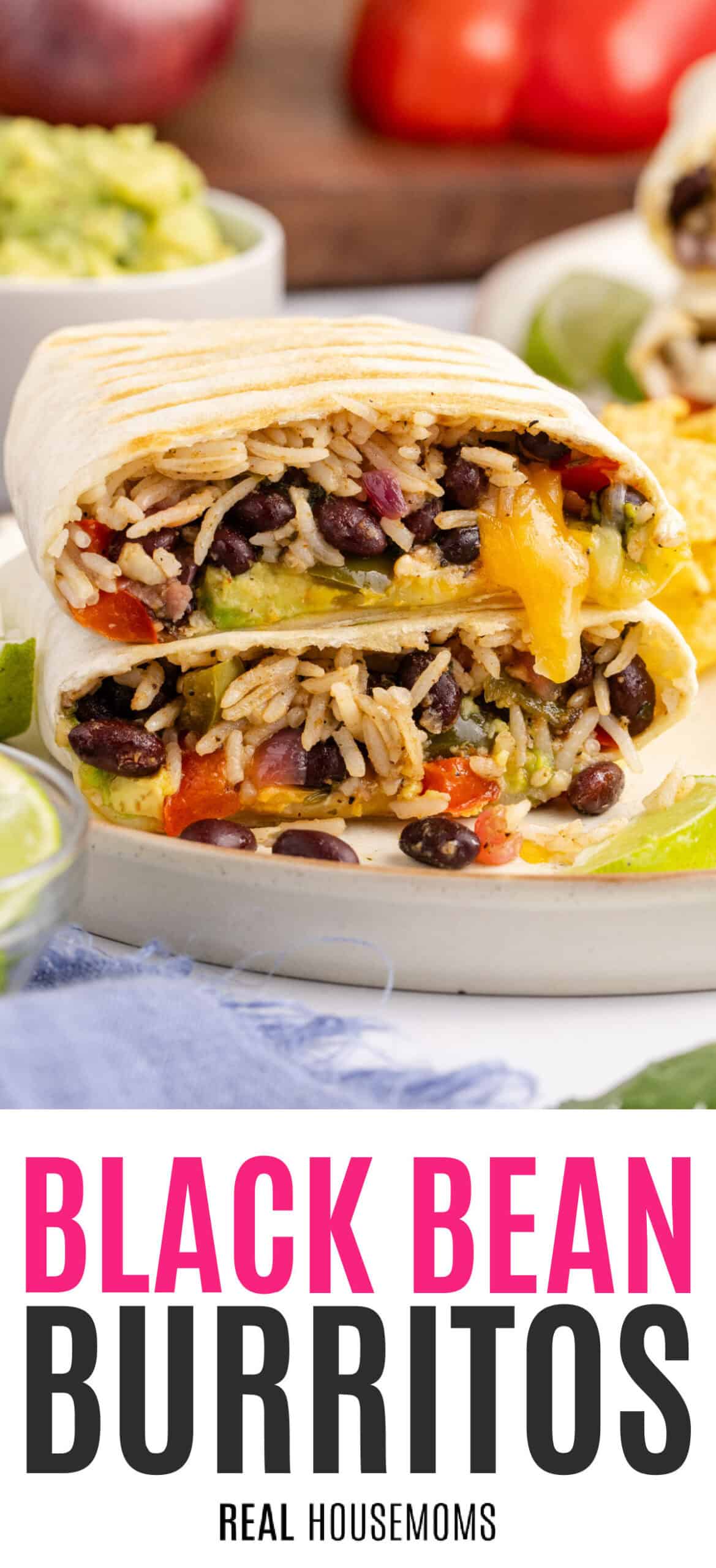 Vegggies & Fruits: These burritos are loaded with nutrition from black beans, red & green peppers, red onion, lime juice, and avocado!