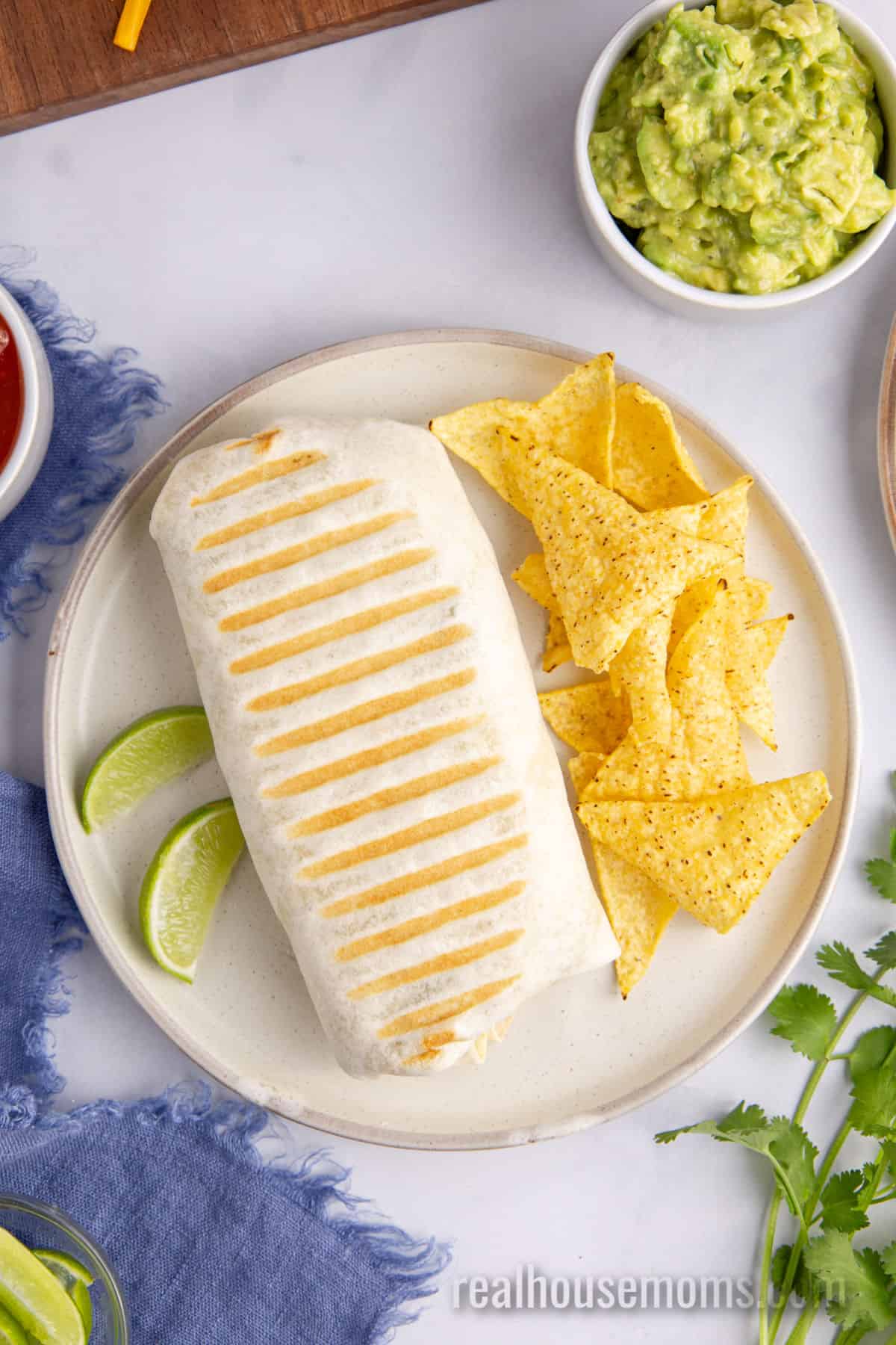 - “Finish” the burritos in a panini press for a seared, crispy wrap that’s easy to hold.