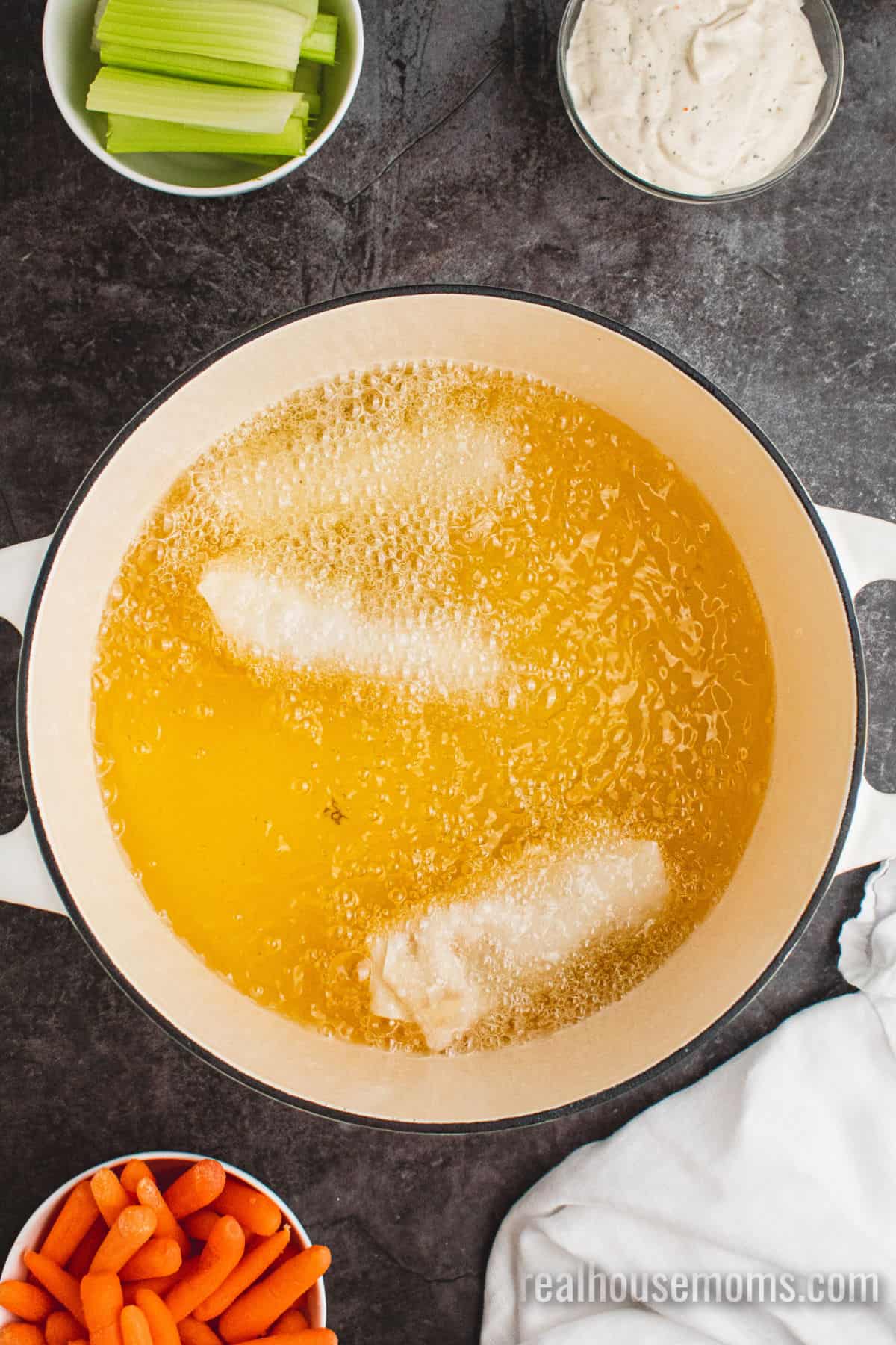 Shallow pan-frying the Buffalo Chicken Rolls makes them extra rich and crispy – and it’s pretty quick and easy! HOWEVER, you can certainly oven-bake or air-fry this recipe with no problem!