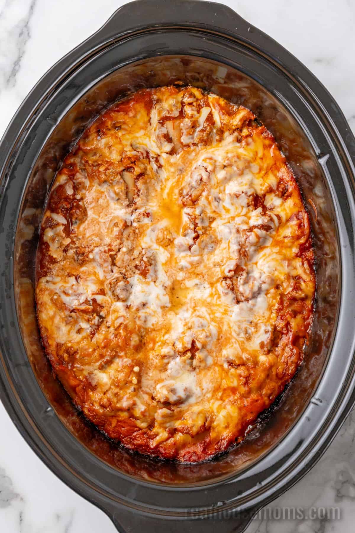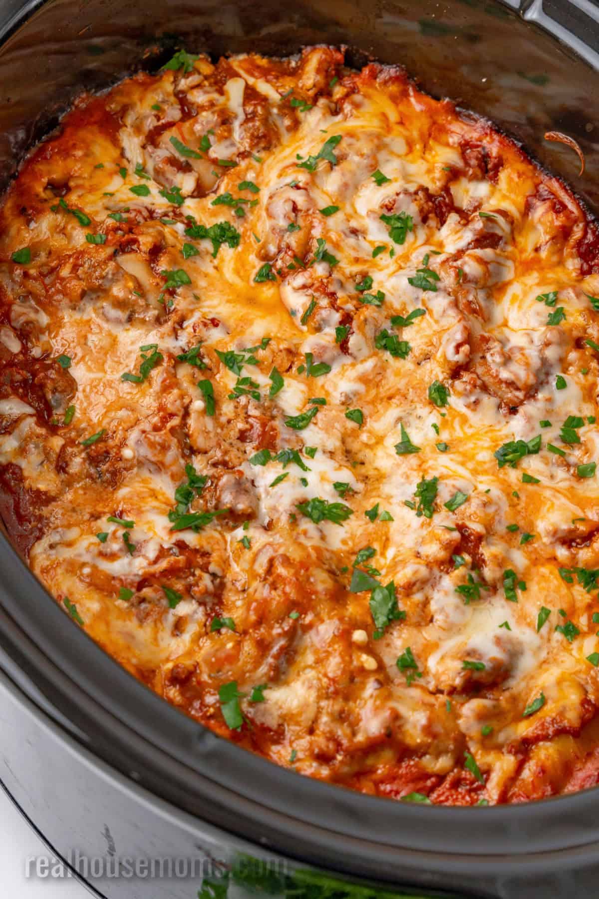 - It’s EASY. Cook and season the ground beef. Blend the cheeses. Layer the ingredients into your crockpot, then set it and forget it! This crockpot version only takes a fraction of the time and effort of oven-baked lasagna.