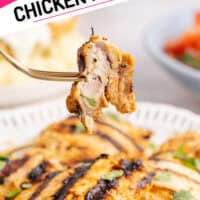 No grill? Cook the chicken in a hot skillet over medium-high heat for about 5–6 minutes per side, or bake at 425°F for 20-25 minutes, until the internal temperature reaches 165°F.