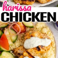 This harissa chicken stands out from simpler versions thanks to a few smart additions. Honey helps the chicken caramelize beautifully, Greek yogurt keeps the marinade rich and the meat tender, and the cool cilantro yogurt sauce balances the smoky heat with a fresh, creamy finish.