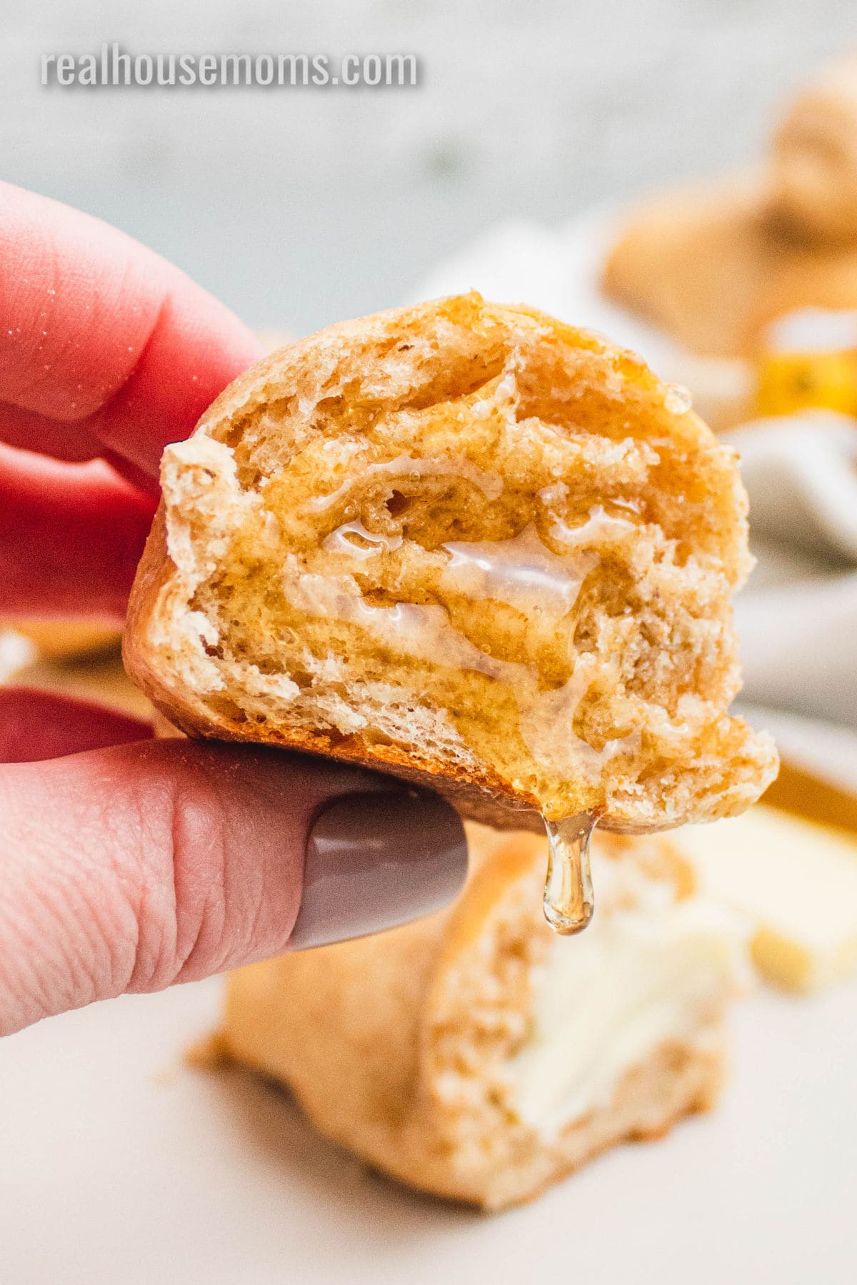 - Melt the remaining 1 tablespoon of butter and brush it over the tops of the rolls. Serve warm with jam, butter, honey, or as is.