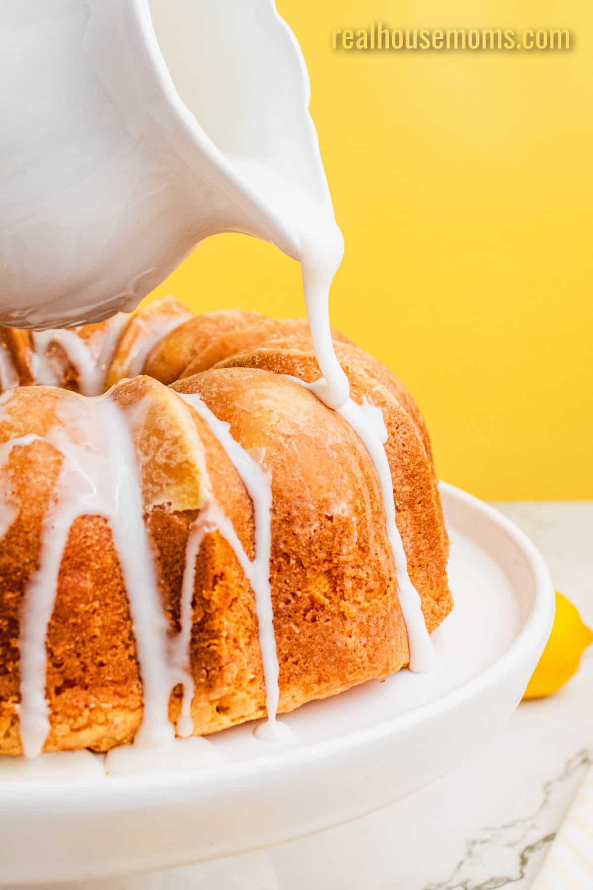 STEP FIVE: Whisk the glaze until it’s smooth and thick but still easy to drizzle. The sweet glaze finishes the cake with an extra pop of lemon flavor and gives each slice that polished, bakery-style feel.