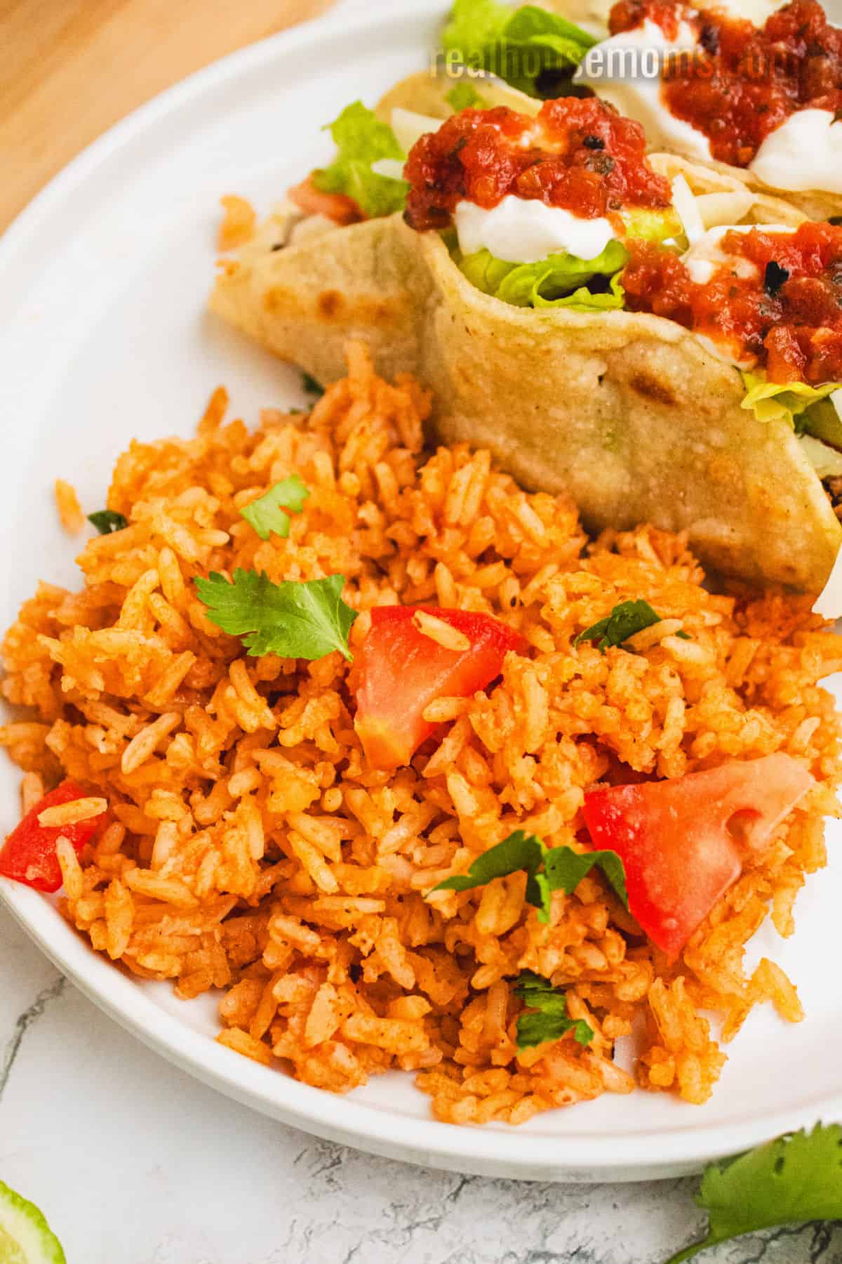 Easy homemade Mexican Rice is a fluffy, restaurant-style side dish with tomato, garlic, and cumin, ready in 45 minutes for taco night.