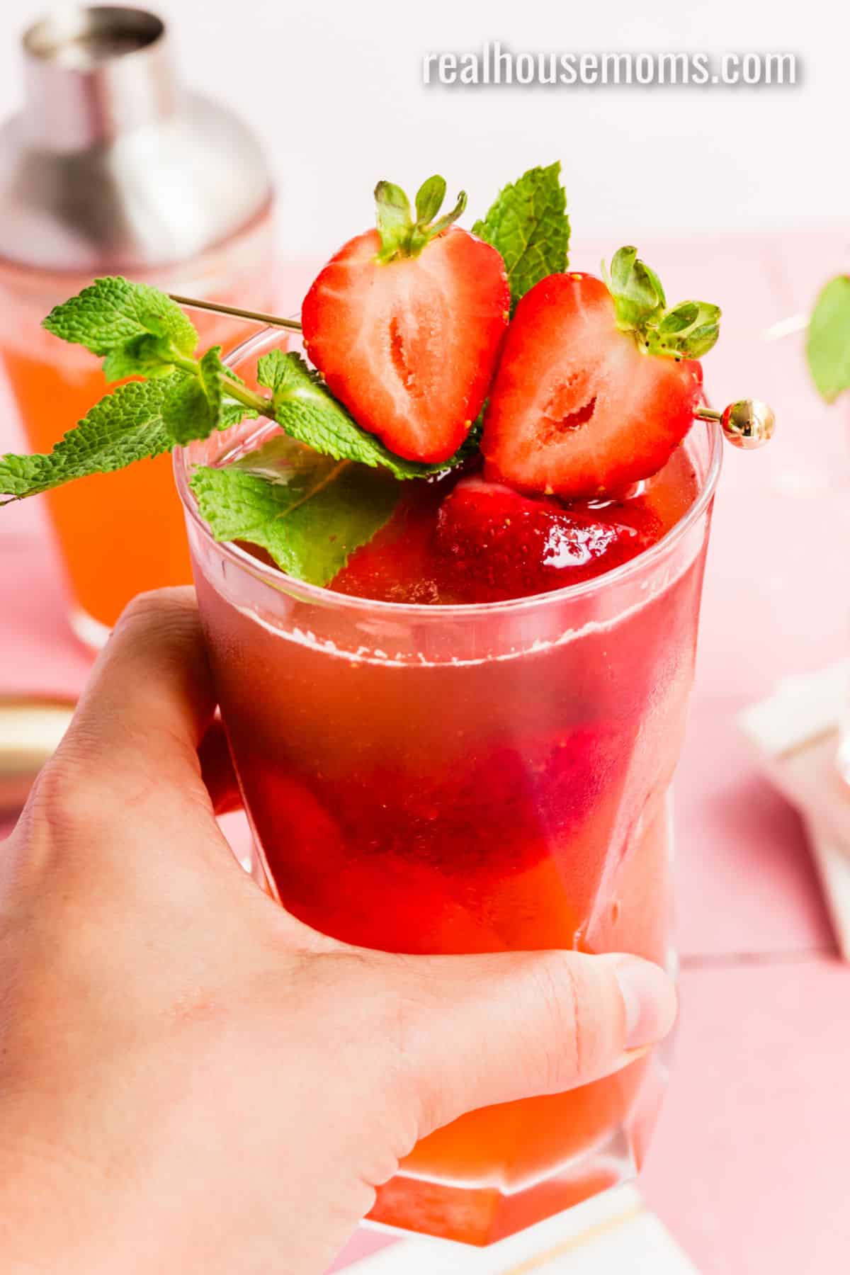 - Fresh or frozen strawberries can be used in this recipe, but if you use fresh berries, be sure to freeze them before making this cocktail.