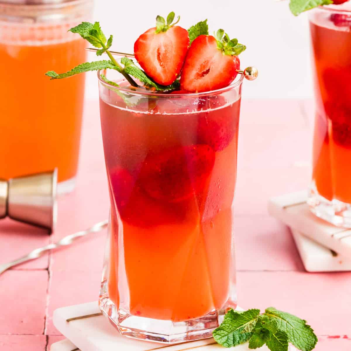 The ultimate refreshing summer drink, Pimm’s Strawberry Mint Cocktail is a wonderful mix of a floral gin, lemonade, strawberries, and mint!