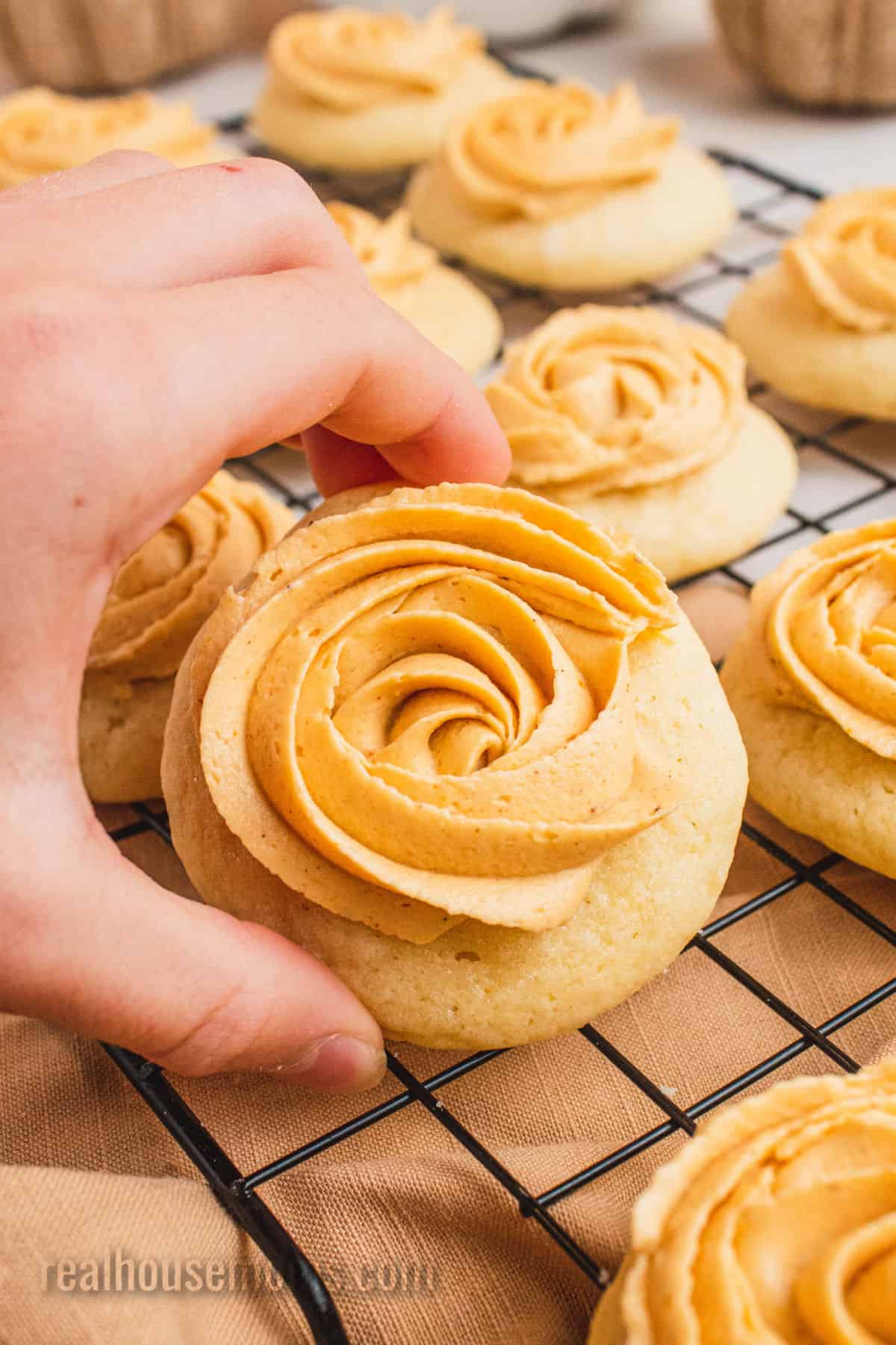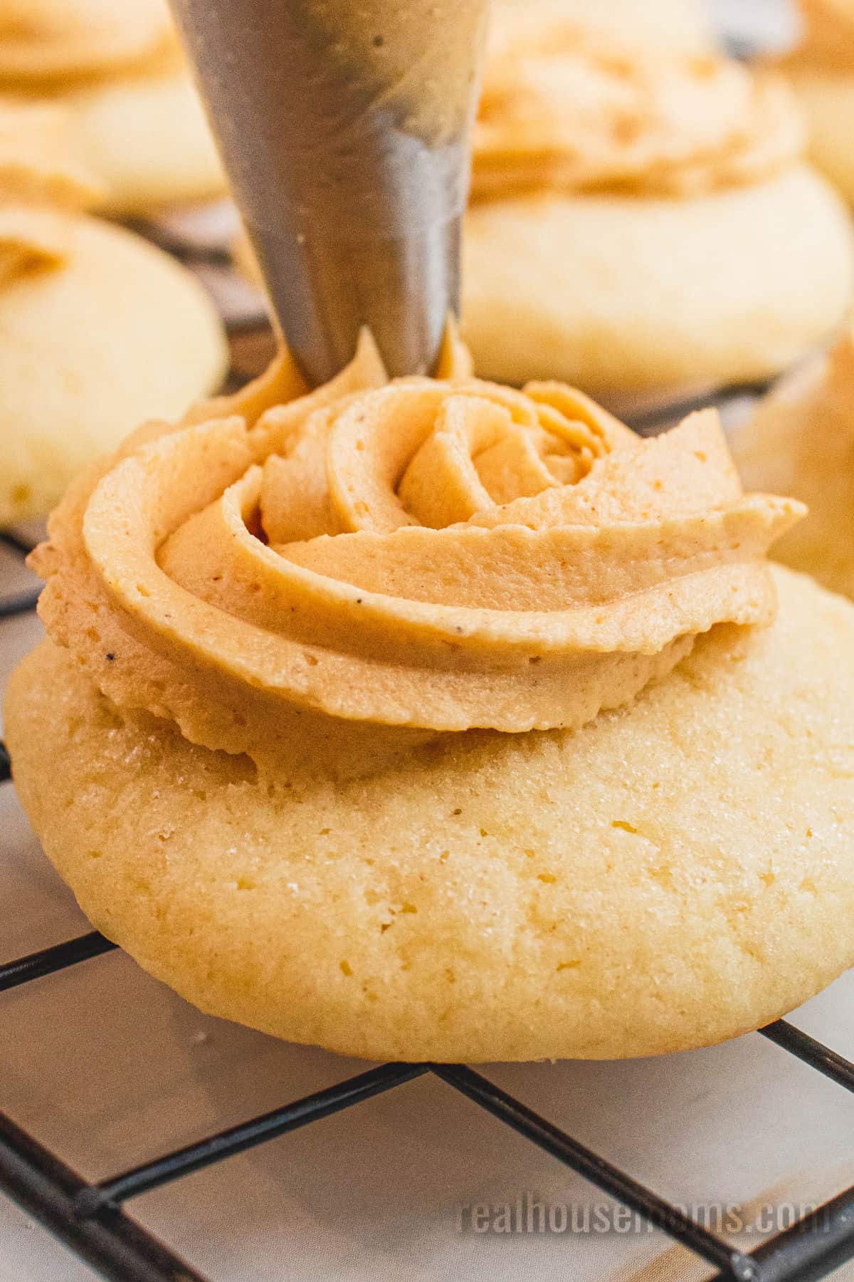 STEP SIX: Transfer the frosting to a piping bag with your desired piping tip. Frost the cookies once they are completely cool. You can also spread the frosting onto the cookies with an offset spatula if you prefer.