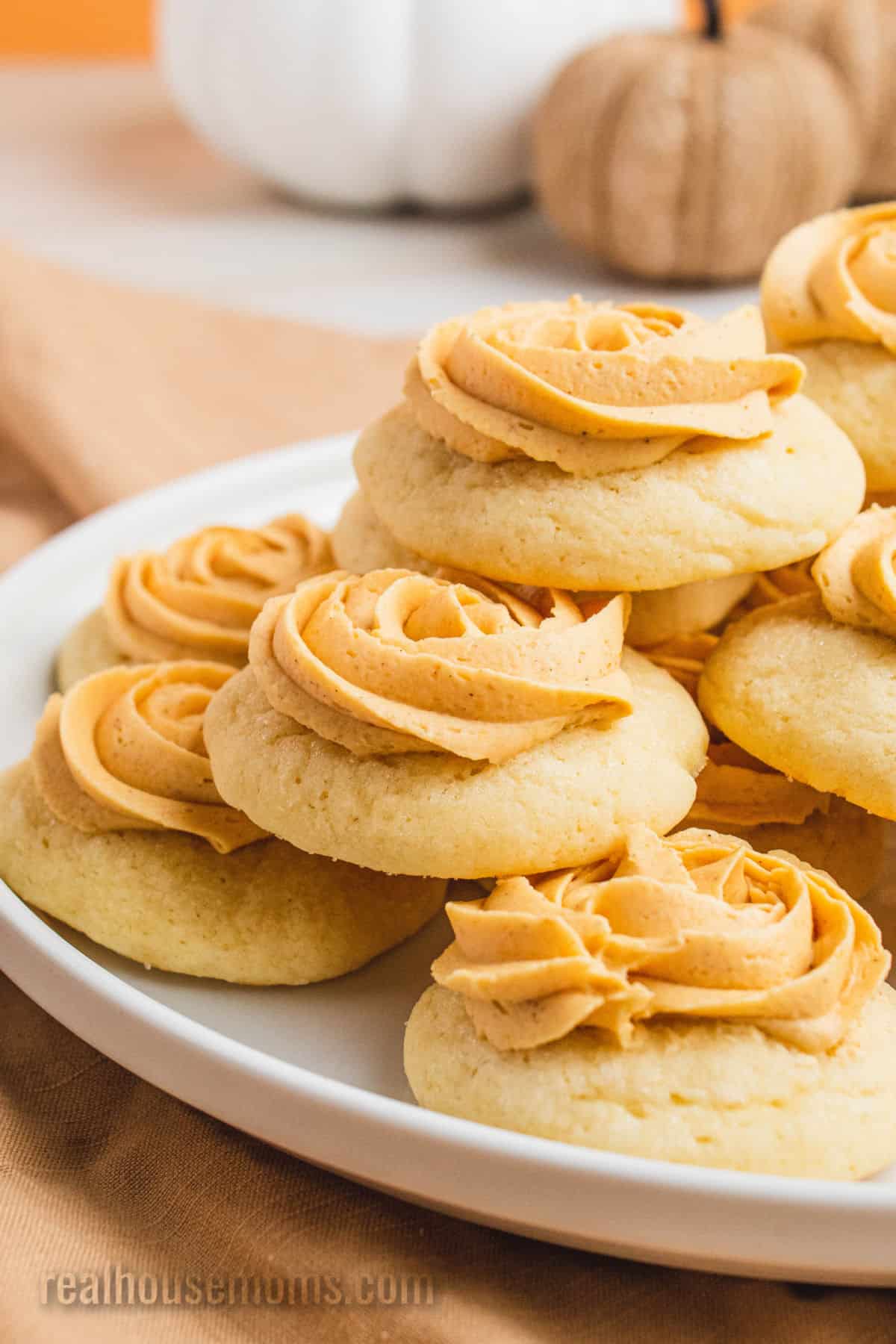 I’m firmly in the “don’t want to wait to eat cookies” camp with the rest of you. When we crave cookies, we need them now! Thankfully, I can pull out this quick and incredible Pumpkin Spice Sugar Cookie recipe and save the day by having cookies ready in about 30 minutes. The dough comes together in a snap and doesn’t need to be refrigerated or rolled out, so it’s just stir, scoop, bake, and eat! The frosting has the perfect amount of pumpkin puree and spices, so not all of it makes it to the cookies. However, once it does, we gobble the cookies up so fast that we have to make more!