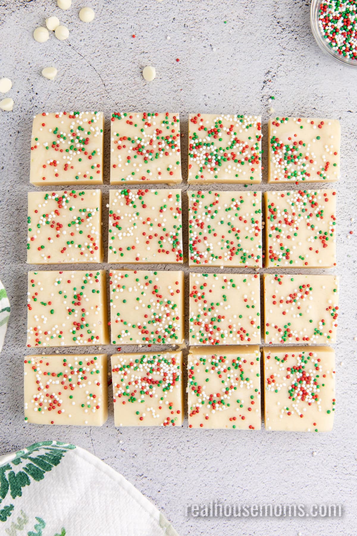 Garnish: Ted & green sprinkles take this fudge from classic to Christmas!