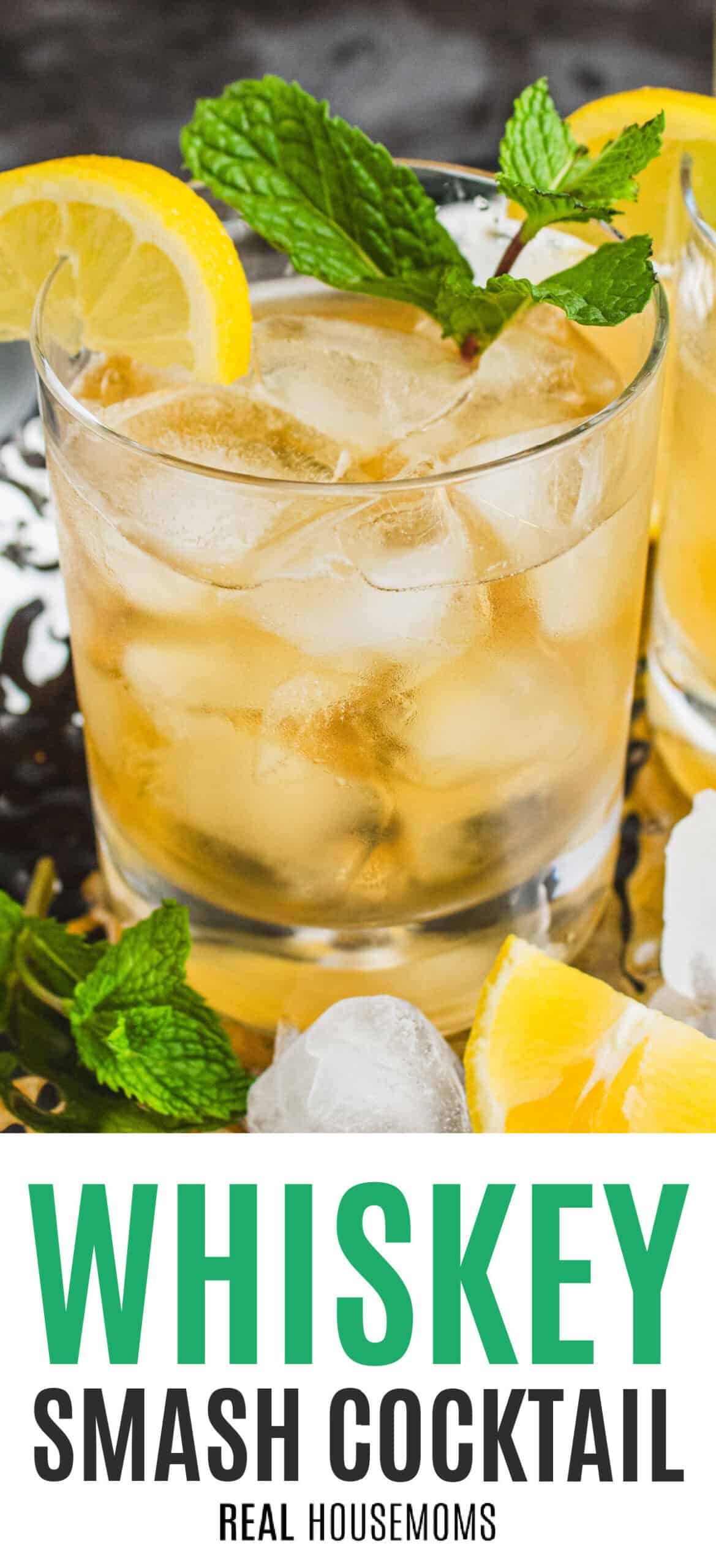 A refreshing, 4-ingredient Whiskey Smash cocktail featuring bourbon whiskey, sweet simple syrup, tangy fresh lemon and bright, beautiful mint leaves for an exceptional drink! Serve on the rocks in a classic old-fashioned glass for smooth sipping anytime, anywhere!