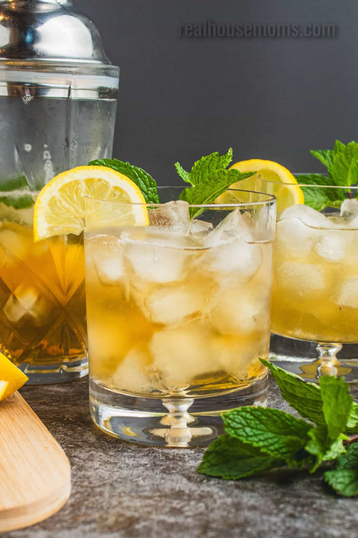 A whiskey smash is the perfect summer sip! It’s a bourbon whiskey cocktail made with muddled lemon and mint, sweetened with simple syrup. Unlike most strong-flavored whiskey drinks, the fresh fruit and mint zest temper this cocktail, making it mild and perfect for slow sipping. Whiskey Smashes are served on the rocks in an old-fashioned cocktail glass with a wedge of lemon or sprig of mint. Enjoy!