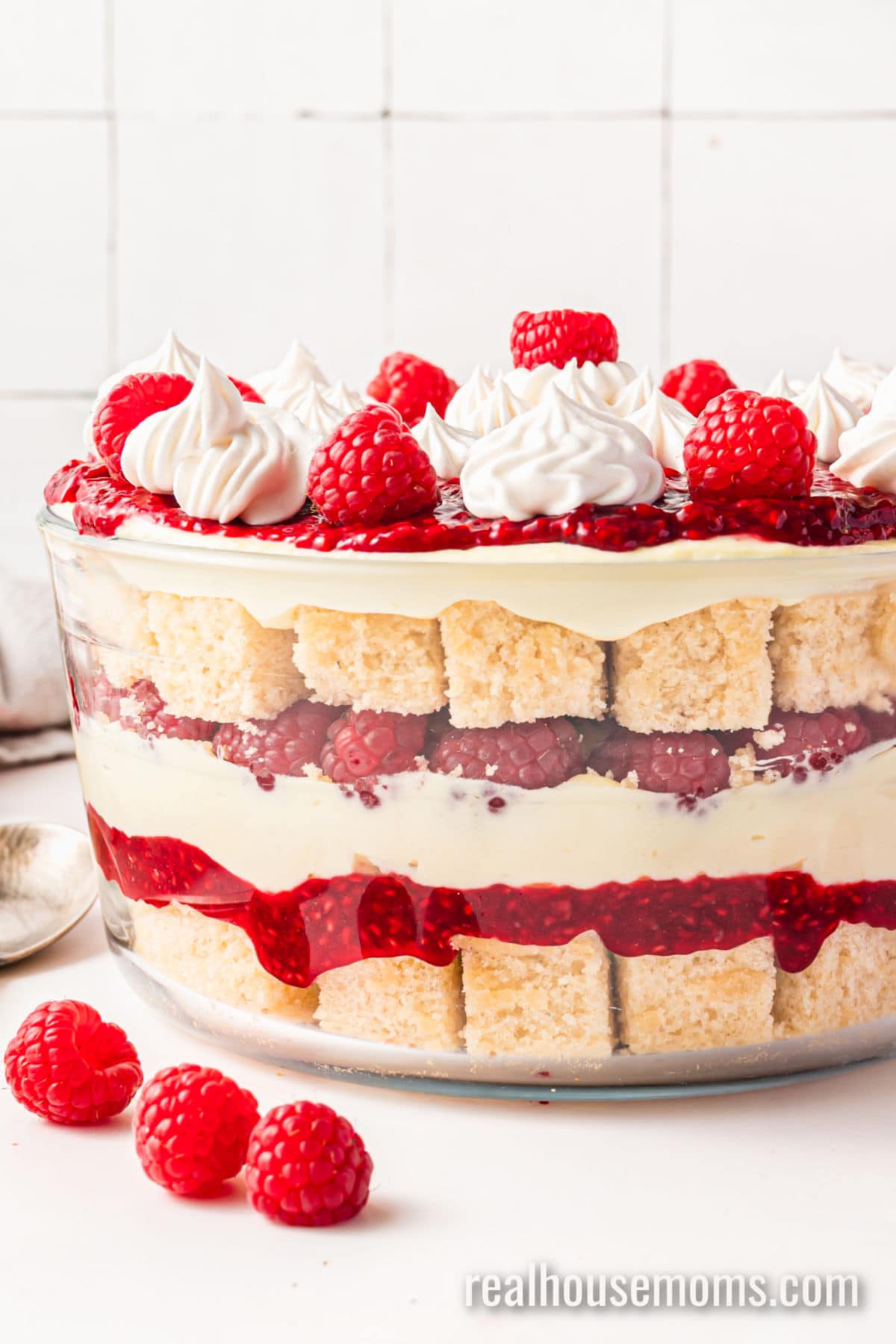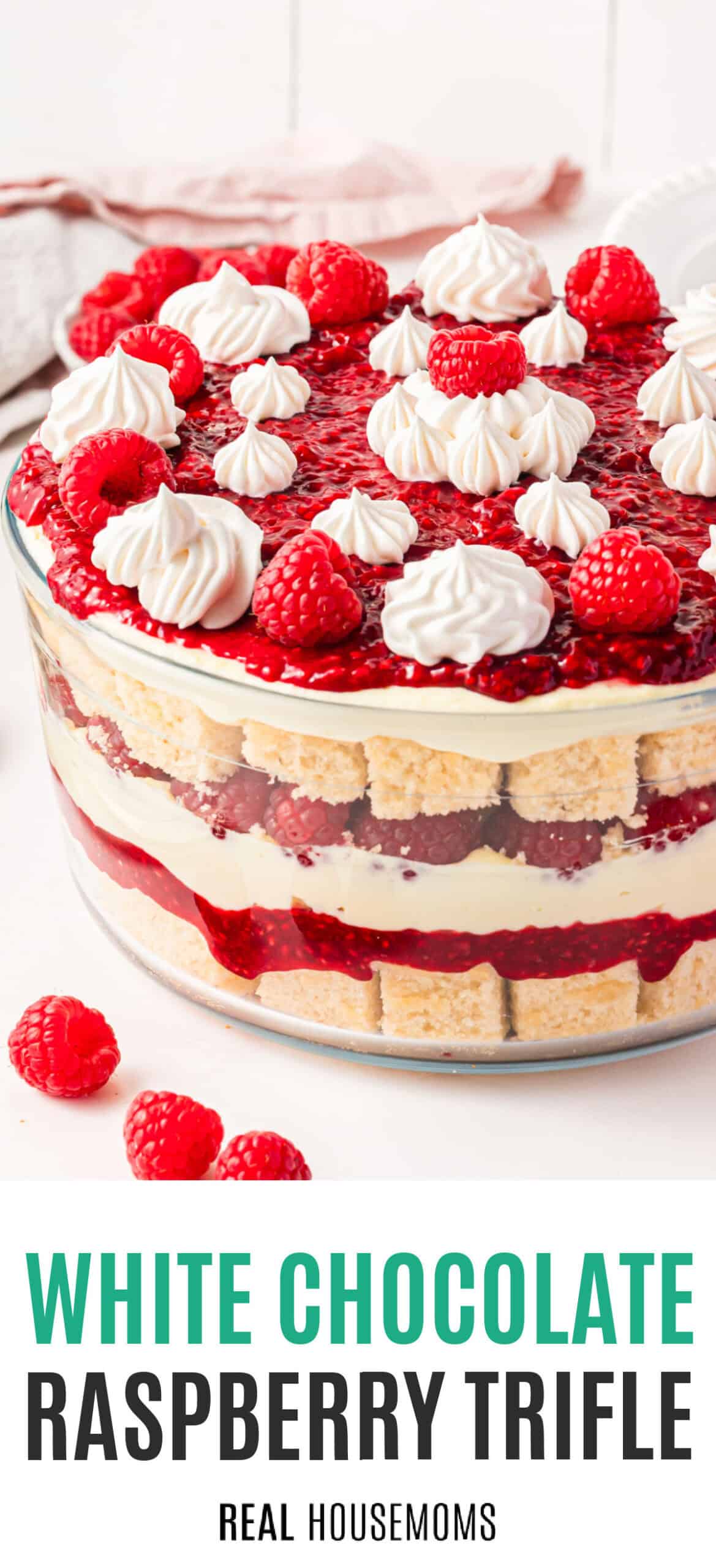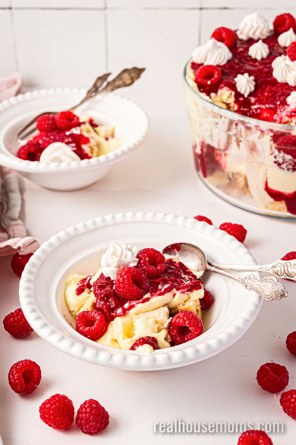 Finishing Touches: You will need fresh raspberries to layer in the trifle, a few on top to make it really pop, plus whipped cream, and optional shaved white chocolate.
