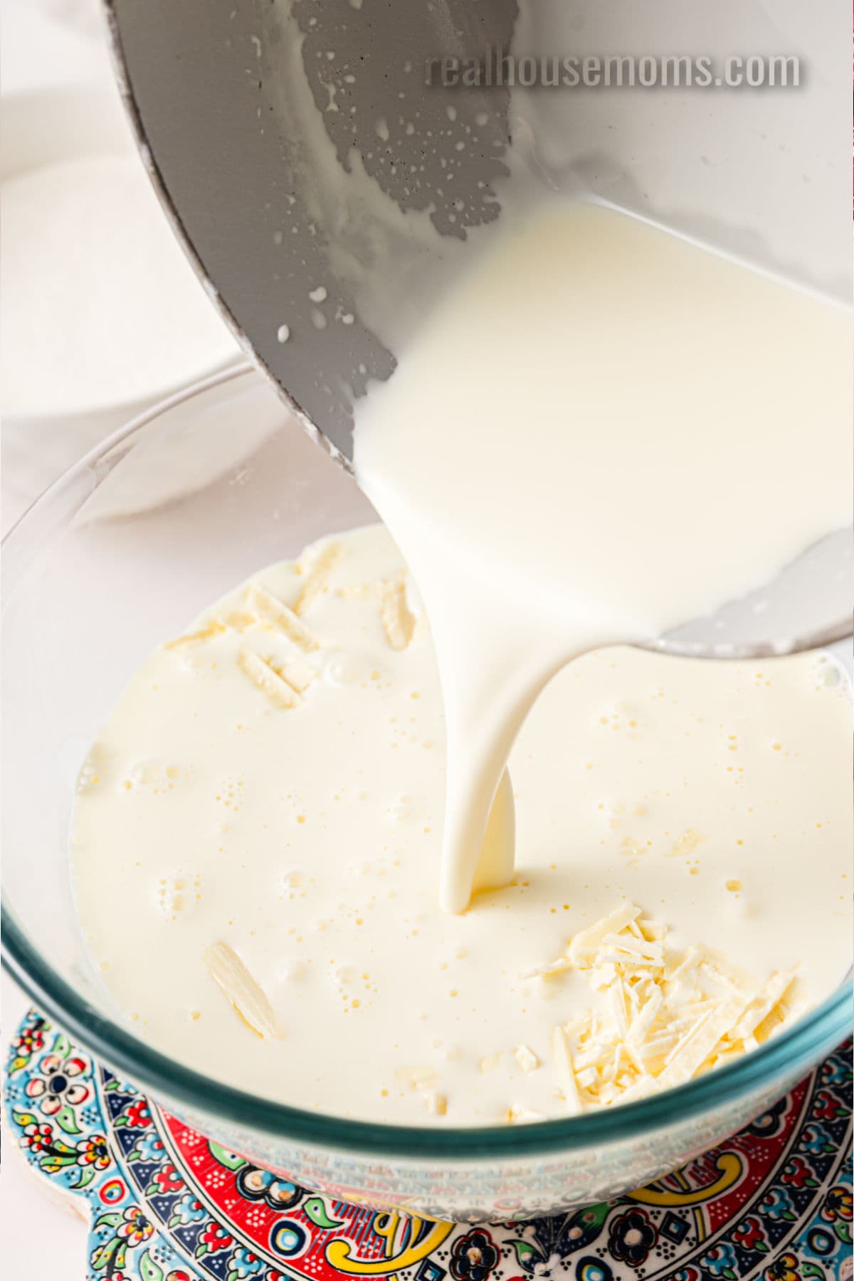 - If the chocolate doesn’t melt completely when you add the warmed heavy cream, pop the bowl into the microwave and heat for 30 seconds.