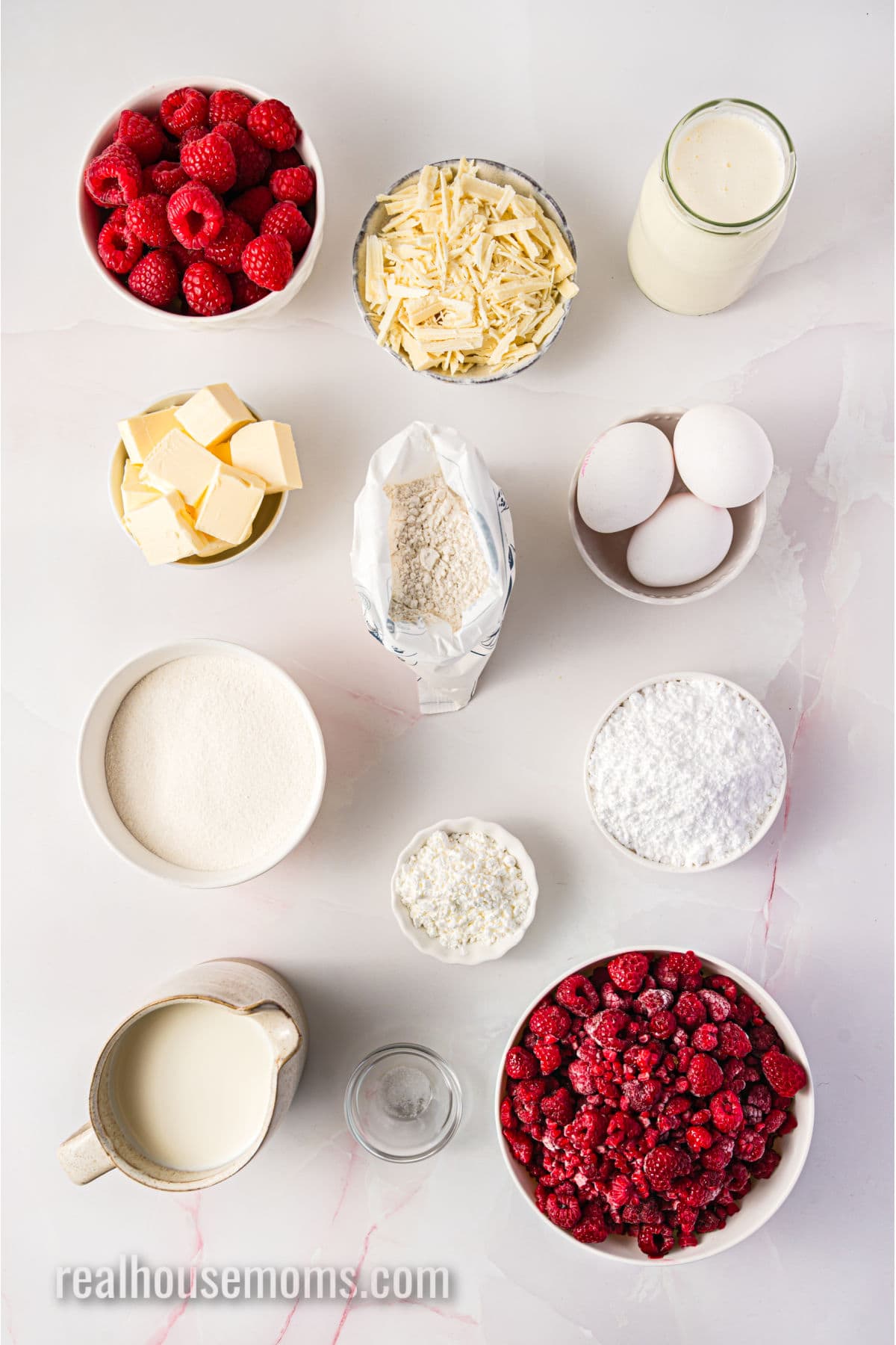 Raspberry Sauce: This easy-to-make sauce is a mix of frozen raspberries, cornstarch, powdered sugar, and a pinch of salt.